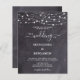 Bjud in vänner och familj till din bröllopsdag med dessa eleganta men rustika tavla- och strängljus bröllopsinbjudningskort. Dessa unika skifferbröllopsinbjudningar har eleganta vita strängljus på grå tavla skiffer design. Anpassa dessa tavla bröllopsinbjudningar med namn, bröllopsdatum och plats. Se vår bröllopssamling för unika bröllopsinbjudningar, bröllopsfotoalbum, gästeböcker, festgåvor och mer! COPYRIGHT © 2020 Judy Burrows, Black Dog Art - All Rights Reserved. Budget Rustik Tavla Strängljus Bröllopsinbjudan
