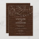 Budget Rustika Bakgrund med Träskivor och vackra strängljus Bröllopsinbjudan. Typsnittets färg och typ kan ändras via redigeringsmenyn. Bakgrunden är också anpassningsbar, om du inte gillar de horisontella träskivorna, prova att rotera dem till vertikalt läge i redigeringsmenyn för ett annat utseende.