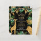 Denna djungel av typen "vild ett", safari, som kallas babyduschinbjudan, har guld-faux-folie (giraffe, lejona och apa), guld och grönt-djungelblad och en skarpsill av guld konetti mot svart bakgrund. Lägg till namn i mamma och duschdetaljer i vitt och guld. En samordnande djungelblad mönster i grönt och guld på en svart bakgrund dekorerar kortets baksida.