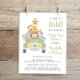 Det budgetvänliga parets pojke-duschinbjudan med ett illustration av baby zoo-djur (lejona, elefanter, zebra, apa och giraffe) som samlas i ett safari fordon och "Det är på väg att få Vild" i typografi av roligt och "Baby Shower" och mor och far namn i samordningen av arméns grönt. Du kan enkelt anpassa duschdetaljer, ändra texten "Det är en pojke!" på fordon och lägga till duschdatumet på registreringsskylten eller lämna tomt.
