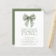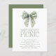Budget Sage Gingham Bow Baby Shower Picnic. Ett mindre budgetalternativ på 4,5 x 5,6 tum på en halvglöd på 110 lbs som är lika tjockt som ett vykort. Det finns EN per lakan. En modern coquette-buskdesign för ditt barn. Anpassa enkelt texten efter behov och ändra färg och bakgrund om du vill genom att redigera ytterligare alternativ. Med en illustration av en sage coquette gingham-båge.