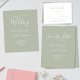 Budget Bröllop Svarsmall Invitation har en elegant, modern och ren typografisk design med en salvia grön färgskala. Denna inbjudan är redo för dig att anpassa med detaljerna för din speciella dag. Vänligen bläddra bland det salvia gröna eleganta minimala bröllopspaketet för matchande brevpappersvaror.
