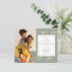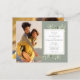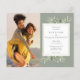 Med känsliga akvarellblad på en grönsaksgrön bakgrund kan denna eleganta botaniska budgetbröllopsinbjudan anpassas med era speciella foton och detaljer från den stora dagen. Designad av Thisisnotme©