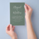 Budgetera Anpassa den här Grönten Enkel och Elegant Dubbla Sida med foto på bakre inbjudan med ditt meddelande och information. Den här inbjudan till chic innehåller en enkel handskriven manustypografi för snyggt och elegant för att det speciella Bröllopen ska kunna vara firande.