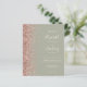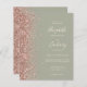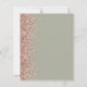 Den lämnat kant i eleganten är en modern bröllopsinbjudan från ro guld faux glitter gräns. Anpassadet kombinerar elfenbenshandskrift, tryckplåt och kursivt typsnitt mot bakgrund av en grönt. Den omvända sidan har en matchande sidstorlek och ro guld-grönt.