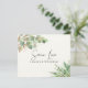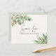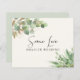 Budgetera bröllop-annonseringsalternativet om omständigheterna kräver att du minskar storleken på bröllop. Det här vackra och moderna, lätta gräddkortet i bröllop har mjuka vattenfärger i ljust grönt eukalyptus löv med guld-accenter och "Samma Kärlek Mindre Bröllop" skrivet i ett snyggt och modern typografi över ljuskrämens framsida. På den ljusa grönten bak kan du enkelt anpassa nedgraderingsmeddelandet för bröllop mer i detalj och lägga till eventuell ceremonisk boskapsuppspelning, framtida webbplatsinformation för firande och bröllop. Finns även på andra pappra produkter, t.ex. ett 5 x 7-platta eller vykort.