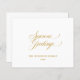 Budget Säsongs Hälsningar Guld Skript Typografi Julkort. Skicka julhälsningar och meddelande till familj och vänner med detta moderna eleganta julkort. Personifiera detta platta kort genom att lägga till ditt familjenamn och meddelande. Välj mellan en bred uppsättning papperssorter. Lätt att anpassa. Skaffa ditt idag!