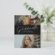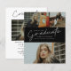 Denna moderna, eleganta stilrena fotoutskick för examensfirande består av en kombination med examensskript och anpassningsbart namn, skola och tre foton i en collage på framsidan. Baksidan innehåller gratulationer och evenemangsinformation med ett extra foto. Ett bra sätt att visa upp din examen.