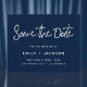 Budget Marinblå Modern och Elegant Minimalistisk Handskriven Script Spara Datum Bröllopskort. Spara datum inbjudan kortet innehåller modern handskriven script typografi med en chic och enkel design som du kan lägga till din anpassade förlovningsfoto bild till.