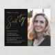 Modern minimalistisk 60-årsfestinbjudan med stilrent falskt guld folie-nummer handskriven skrift Sixty och dina festdetaljer i klassisk serif-teckensnitt på svart bakgrundsfärg, enkel och elegant, fantastisk överrasknings inbjudan för vuxna till milstolpe födelsedag för män och kvinnor. den svarta bakgrundsfärgen kan ändras till valfri färg.