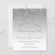 This trendy 25th wedding anniversary surprise party invitation features a sparkly silver faux glitter drip border and silver ombre background. The words "Shhh! It's a Surprise," "25th Anniversary Party" and the names of the couple appear in casual silver gray handwriting script, with the rest of the customizable text in sans serif font. The same silver glitter drip design appears on the reverse side.