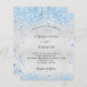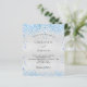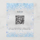 Faux silver metallisk tittar bakgrund dekorerad med blå hjärtan. Anpassa och lägg till information om namn och bröllop. Svart färgad brev. Tillbaka: Lägg till webbadressen för bröllop i QR-koden för mer information och registrering av OSA. Den här inbjudan finns också i vår butik utan QR-kod på baksidan