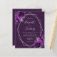 Den här elegantens moderna bröllopsinbjudan innehåller en silver-geometrisk ram som dekoreras med blommor från lila och silver på plommonlila. I anpassadet kombineras silver grått med fysisk handskrift, tryckplåt och kursivt typsnitt. Lägg till ytterligare information på baksidan tillsammans med en QR-kod som hjälper dina gäster att besöka webbplatsen för bröllop.