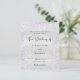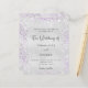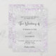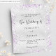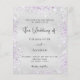 En modern, elegant och minimalistisk bröllopsinbjudan. Faux silver metallisk tittar bakgrund dekorerad med lila och faux silver glitter stoft. Anpassa och lägg till information om namn och bröllop. Svart färgad brev.