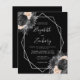 Den här elegantens moderna bröllopsinbjudan innehåller en silver-geometrisk ram som dekoreras med persiko-, svart- och silver-blommor i svart bakgrund. I anpassadet kombineras silver grått med fysisk handskrift, tryckplåt och kursivt typsnitt. Lägg till ytterligare information på baksidan tillsammans med en QR-kod som hjälper dina gäster att besöka webbplatsen för bröllop.