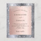 En modern, elegant bröllopsinbjudan. Falskt silver och roséguld metalliskt utseende bakgrund dekorerad med falskt silverglitter. Personifiera och lägg till era namn och bröllopsdetaljer. Svarta bokstäver.
