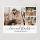 Budget, Modern, minimalistisk svart och vit hand som hyrt Bröllop (3) Tre fotokollage - tack. Snyggt bröllop tackar dig för att du har en kortmall med tre (3) foto på framsidan och ett (1) foto på baksidan. Med texten "Kärlek och tack" i ett snabbt och välskrivet typsnitt för typografi med dekortecken. Litet hjärtdodle mellan namn. Lägg till ditt eget namn och tack för meddelandet. Om du föredrar att skicka anteckningen tar du bara bort exempeltexten för att få mer utrymme.