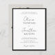 Ett enkelt skript för elegant med klassisk typografi-bröllopsinbjudan intill en vanlig kvadratisk bakgrund.