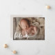 Budgeten Simple Modern Calligraphy Baby Three Photo Birth Notice visar ditt storleka foto på framsidan, tillsammans med trendigets moderna kalligrafi. Två foton till är på baksidan.