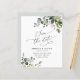 Den här eleganten och anpassadet Spara datumkortet innehåller blandade vattenfärgsgröna löv parade med ett klassserif & delikat sans font in black, med ett monogram på baksidan. Matchande objekt är tillgängliga.