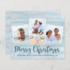 Skicka varma julhälsningar från stranden med detta personliga kustnära julkort med 3 foton och ”Merry Christmas” i handskriven typsnitt. I mitten finns en grupp akvarellsjömusslor, med en strandvedsbakgrund. Dessa budgetkort är gjorda av ett mer ömtåligt, mindre och lättare papper, vilket sparar pengar och träd.