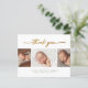 Elegant Skript 3 Foto Kollaž Baby Tillkännagivande Tack-kort. På baksidan finns ett tackmeddelande som du kan anpassa eller ta bort om du föredrar att skriva ditt tack för hand.