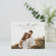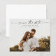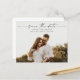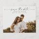 Ett Budget Skript Foto Bröllop Spara Datum-kort med horisontellt foto och minimal text. Klicka på knappen för att anpassa denna design.