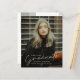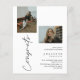 Denna moderna, eleganta stilrena foto examensfest inbjudan har en skript examen överlägg och anpassningsbart namn, skola och foto på framsidan. Baksidan har gratulationer och evenemangsinformation med ytterligare 2 bilder. Ett bra sätt att visa upp din examen. Klicka på redigera för att anpassa.