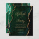 Denna eleganta bröllopsinbjudan har en bakgrundsbild av smaragdgrön akvarellagat med falskt guldglitter. Den anpassningsbara texten kombinerar guldmodern handskrift, kopparplåt och kursiv stil. Baksidan har en matchande smaragdgrön och guld agat-design.