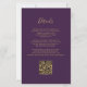 Den vänstra kanten på denna eleganta moderna bröllopsinbjudan har en smaragdgrön akvarell-agat-kant med falskt guldglitter. Den anpassningsbara texten kombinerar guldfärgad handskrift, kopparplåt och kursiv stil på en lila bakgrund. Lägg till ytterligare information på baksidan, tillsammans med en QR-kod för att hjälpa dina gäster att besöka din bröllopswebbplats.