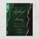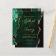 Denna eleganta bröllopsinbjudan har en bakgrundsbild av smaragdgrön akvarellagat beskurad med falskt guldglitter. Den anpassningsbara texten kombinerar guldliknande modern handskrift, kopparplåt och kursiva teckensnitt. Baksidan har en matchande smaragdgrön och guldagat-design.