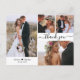 Budgeterad Elegant Snyggt Hand med skript 4 Photo Collage Bröllop Tack vykort. Minimalistiskt tack för bröllop, du har en kortmall med fyra foto på framsidan och ett foto på baksidan. Med texten "Tack" i ett snabbt, handskrivet skrivstil med ett typsnitt med dekortecken eller i svart på vit bakgrund. Ett litet kärlek hjärta mellan namn. Lägg till ditt eget namn och tack för meddelandet. Kontakta mig om du behöver hjälp eller matcha objekt!