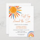 Denna färgglada inbjudan är dekorerad med en akvarellsol och en regnbåge.