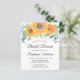 Inbjudan familj och vänner till en Möhippa Brunch med denna elegant budgetinbjudan som dekoreras med vattenfärgade solblommor, eukalyptus och löv i skuggor av gult, grönt och guld. Anpassa den här inbjudan med din information. Eftersom vi skapar vår teckning kommer du inte att hitta just den här bilden från andra designers. Ursprunglig vattenfärg © Michele Davies.