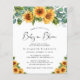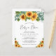 Denna rustika och budgetvänliga könsneutrala baby sprinkle inbjudan har akvarellbuketter med solrosblommor och eukalyptusgrönska och "Baby in Bloom" i ett stilrent skrivsätt.