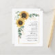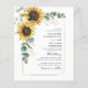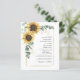 Skapa ett modernt bröllopskort med solrosmotiv med denna söta mall med vacker rustik blomsterbukett, geometrisk guldeffekt ram, qr-kod, med script och modern enkel typografi.