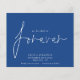 Ett ekonomiskt alternativ i BUDGET på en mindre storlek på 4,5 x 5,6 tum (110 lbs vikt), som är av samma tjocklek som ett vykort (är dock inte lämpligt för använda som vykort). OBSERVERA ATT DET FINNS EN inbjudan per lakan. Budgeten vi beslutade om för att spara datumet för Mid Blue. Elegantens typografi är utformad för att inbjudan dina gäster till sparan ditt datum. Vi har beslutat om Forever som finns i ett skript för snyggt som står i centrum. Resten av texten kan du enkelt anpassa. Text- och bakgrundsterminen färg kan ändras om du vill förbättra kostym i bröllop genom att anpassa ytterligare alternativ.