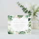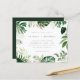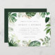 I kärlek med gröna och tropiska viber? Tittar du fira bröllop vid stranden eller bara ha ett naturtemat firande? Och den här sommarbröllopsinbjudan är perfekt för dig. Med vattenfärgade tropiska löv och löv mot vit bakgrund. Dina uppgifter om bröllop visas med enkel minimalistisk typografi. Återvänd till mörk grönt färg. Som en del av budgetvalet här på Zazzle, är dessa inbjudningar inte komar med kuvert och passar inte heller in i ett kuvert av standardstorlek. Den närmaste storleka är A6, men det kommer att finnas en lucka på ungefär en halv tum. Om du inte har något emot att det saknas snus kan du använda så allmänt tillgängliga A6-kuvert. I annat fall kan denna design överföras till ett standardformat 5 x 7 (som levereras med kuvert) med hjälp av designöverföringen verktyg. Som en ungefärlig guide skulle 100 inbjudningar till budgeten (inklusive en volymrabatt) kosta cirka 39 dollar medan 100 standardbelopp på 5 x 7 inbjudan inklusive kuvert skulle kosta cirka 135 dollar. Ditt val kan variera beroende på Zazzles tillgängliga promokoder, försäljning på hela platsen eller prisförändringar.