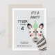 Budget, söt modern svart-vit zebra med födelsedagsfest hatt inbjudan.