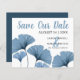 Lägg märke till bröllop med denna vackra, moderna gingko löv-design. Blå och vit vattenfärgsblad skapat för ditt speciella tillfälle. Enkel att anpassa med din unika information.