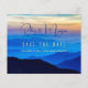 Budgettillkännagivanden från bergsregionen bröllop spara datum. Ett vackert gyllene himlar över blå bergskorpa är bilden med tre linjer anpassningsbar text i modern stil och tryckt typsnitt. Ett enkelt men vackert uttalande från bröllop. Omvänd är helblått. Den här designen finns även på en uppgraderad papper typ.