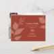 Detta budgetvänliga bröllopskort för att spara datumet har minimalistiska jordton terrakottablad med brudens och brudgummens detaljer i vitt över en bränd orange bakgrund. Det enkla kortet vänds för att inkludera ert pars foto och utrymme att skriva in mottagarens adress. För att se den kompletta moderna bröllopsbrevpapperslinjen besök www.zazzle.com/dotellabelle
