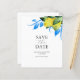 Meddela din förlovning med den här inbjudan till bröllop spara datum i budgeten. Den har en blandning av klassisk och skripttypografi med en pärm av min ursprungliga vattenfärgscitroner med blå gult på en skarp vit bakgrund. Använda mallen fält att anpassa med ditt namn och bröllop-datum. En rustik men ändå elegant-utformning för bröllop och förlovning i Medelhavsområdet. Om du vill se motsvarande bröllop-mall går du till www.zazzle.com/dotellabelle