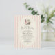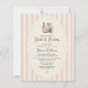 Fira med en charmerande stövlar och bubblor bröllopsdusch. Denna design har en blomster cowboy-stövel i par med en rosa champagneflaska mot en klassisk vertikal randig bakgrund. Det är det perfekta valet för en sydstatsbrud-som-ska-vigtras som vill balansera rustik västerländsk charm med en elegant eftermiddagsbrunch.