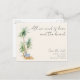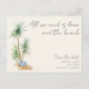 Vattenfärg palmträd med strandväska design spara datum vykort för din destination strand bröllop i vår "Allt vi behöver är kärlek och stranden" design. Anpassa med din bröllopsinformation på framsidan och baksidan.