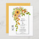 BUDGET Gult vattenfärgssolblommor, bål och initialer är inbjudningar till ett budgetförslag bröllop med OSA QR-kod. I söt bröllop visas en båge ram med gult solblommor, bär och löv på hösten i färg på det lämnat hörnet och i initialer. Namn är i skripttypografi. Baksidan är av solid gult färg med QR-kod som ska genomsökas efter OSA.