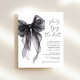 Charmfull budgetvänlig bröllopsfestinbjudan med en vacker vattenfärg av ett svart kokettband, "Hon knyter knuten" i ett chic skrivstil, och hennes namn och evenemangsinformationen i modern enkel bokstav. Detta budget-halvblanka papper har liknande vikt som fotopapper. En större 5x7 traditionell version i kartong finns också tillgänglig (skicka oss ett meddelande för länken).