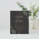 En svart akvatintad agatdesign med falskt guldglitter i två hörn pryder denna eleganta design. Personifiera den med parets namn i guldfärgad handskriven stil över ett stort grått et-tecken. Lägg till briljantinformation i guldfärgad kopparstick- och kursivstil på en mörkgrå bakgrund. Baksidan har en matchande svart och guldfärgad agatdesign. OBS: Kuvert ingår inte automatiskt med dessa budgetinbjudningar, så glöm inte att välja alternativet "vita kuvert"!