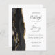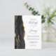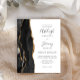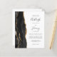 Spara kostnaden för att skriva ut och skicka separata RSVP-kort med denna eleganta moderna allt-i-ett budgetvänliga bröllopsinbjudan. Den vänstra kanten har en svart akvatintakant i agat trimmat med falskt guldglitter. Den anpassningsbara texten kombinerar kolgrå handskriven stil, kopparstick och kursiv stil på vit bakgrund. Baksidan ger utrymme för detaljer om bröllopet, tillsammans med en QR-kod som gästerna kan skanna för att besöka er webbplats och svara.