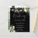Denna eleganta svarta och vita bröllopsinbjudan i budgetklass, med fina strängljus och blomstergrönska, kan anpassas med din information i chic typografi med ditt speciella foto på baksidan. Designad av Thisisnotme©
